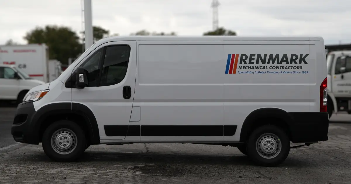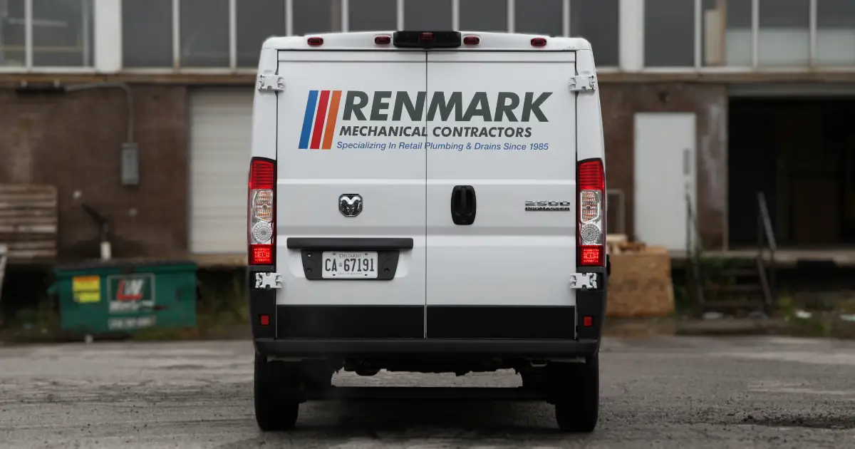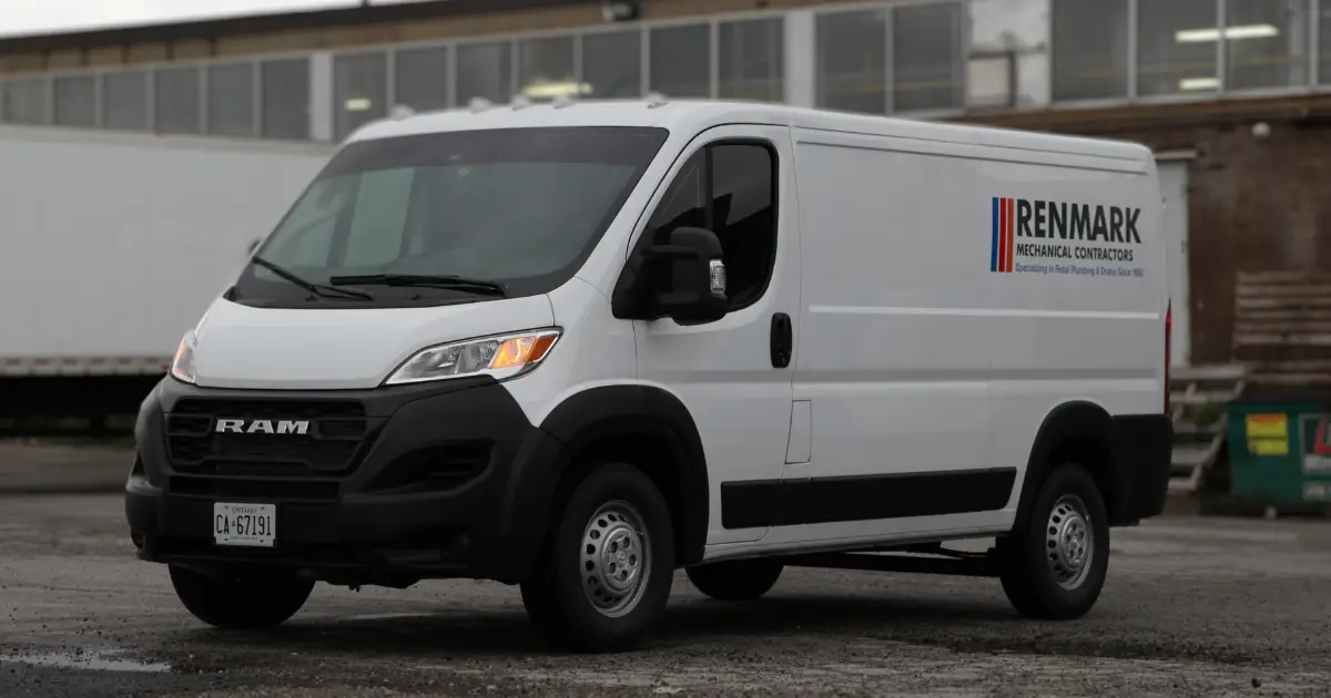 Our team designed custom decals for Renmark’s mechanical contractor vehicle, featuring the company logo printed boldly on the Dodge Cargo. Below are more insights into this transformation.