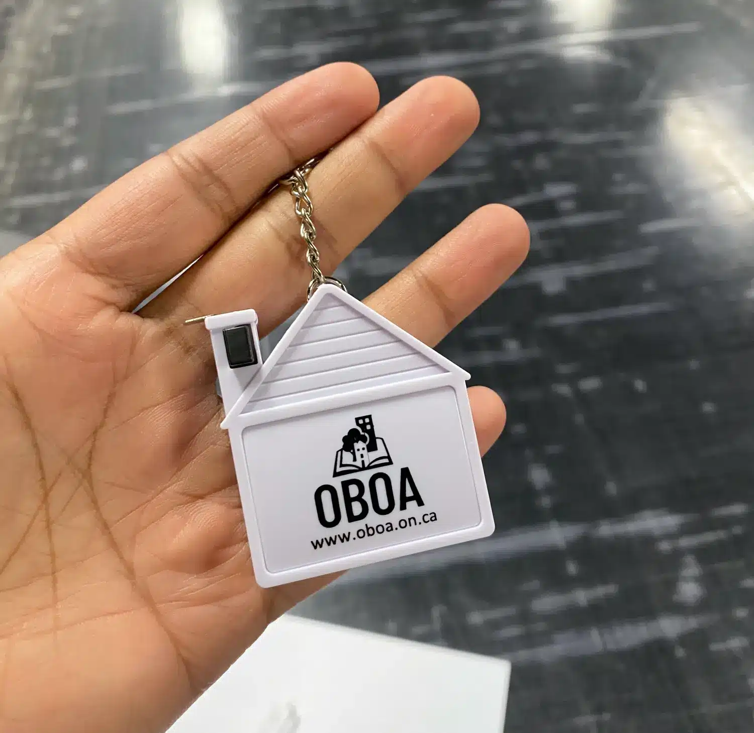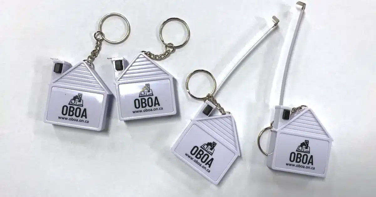 Custom branded keychains with inbuilt measuring tape are an innovative and practical promotional item for businesses. In this blog post, we will focus on how Branding Centres, a one-stop marketing and branding agency, designed and created these keychains for our client, the Ontario Building Officials Association (OBOA). The keychains are in the shape of a house, which aligns with OBOA’s brand and emphasizes their connection to the building industry. The purpose of this blog post is to showcase the benefits of this promotional item and how it helped OBOA in their branding efforts.