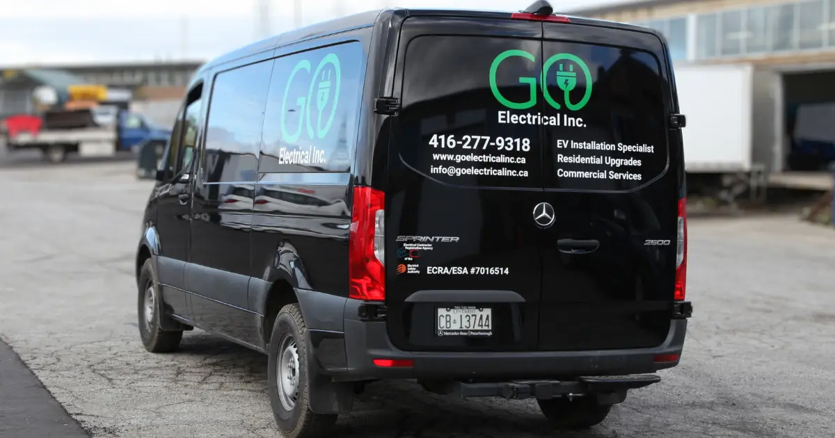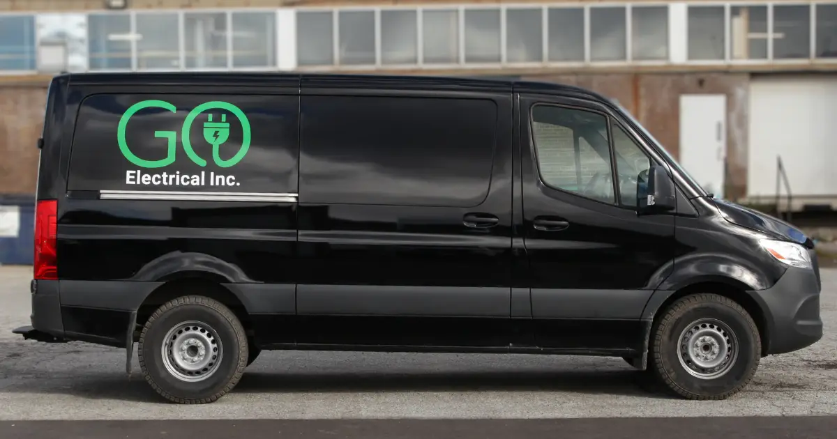Our designers at Branding Centres crafted vibrant decals for Go Electrical Inc., applied to a Mercedes Sprinter 2500. The design features the company’s logo displayed prominently across the entire vehicle. Read on for more details about this stunning transformation!