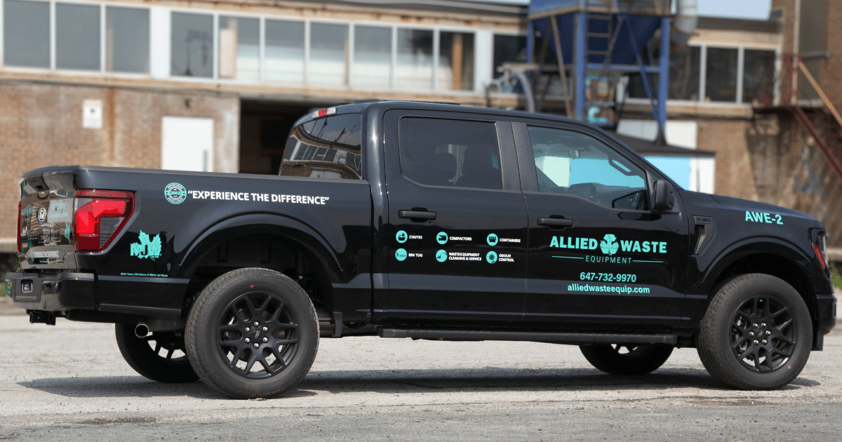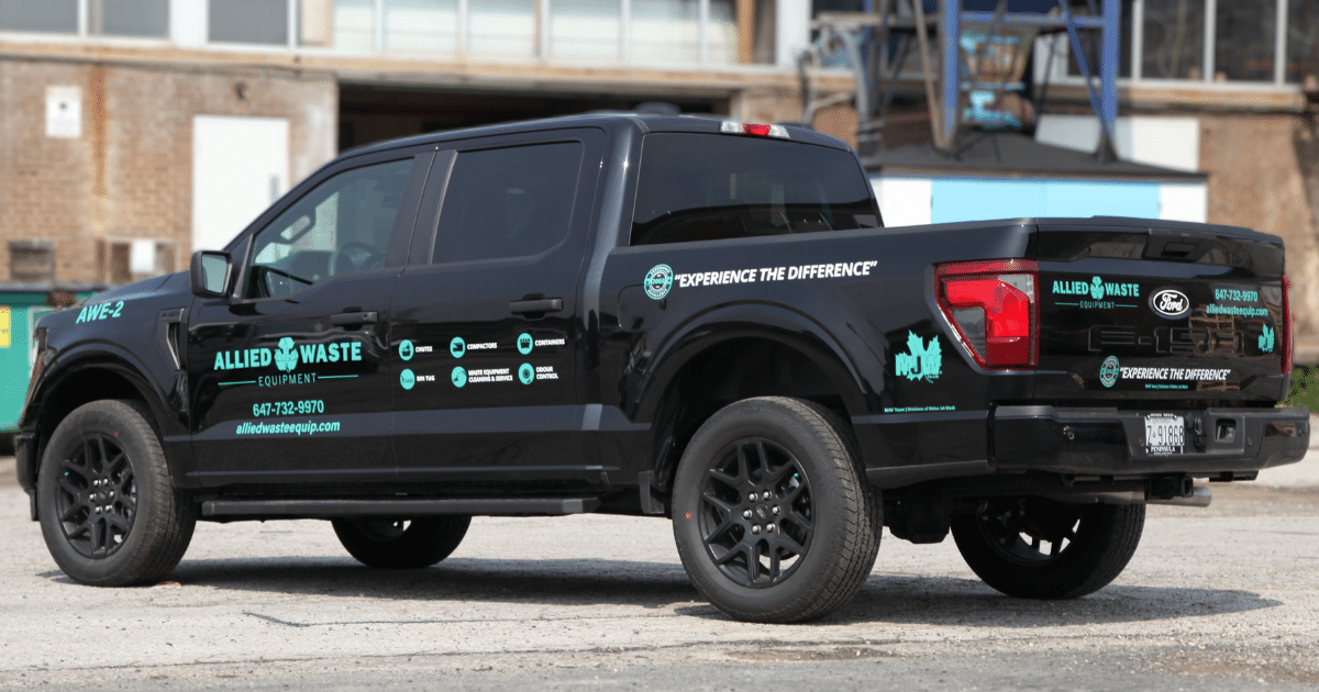 Allied Waste Equipment decals printed onto a Ford F-150