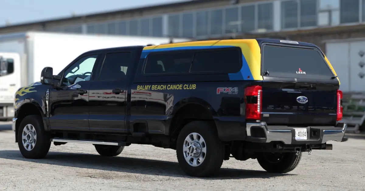 Our team designed striking Ford F-250 decals for the Balmy Beach Canoe Club, featuring bold fire accents on the front of the vehicle. The decals are placed on both sides, creating a hot, eye-catching look. Below are the insights into this transformation.