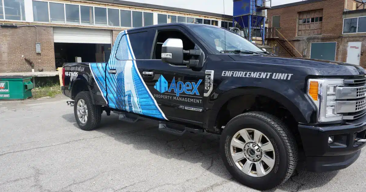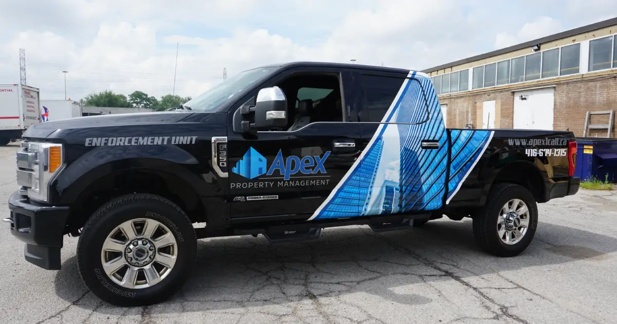 If you’re looking to make a statement with your business vehicle, a Ford F350 partial wrap is an excellent choice. It’s a cost-effective and highly visible way to advertise your business while on the go. At Branding Centres, a one-stop marketing agency in Toronto, we recently installed a custom-designed partial wrap on an F350 for our client, Apex Property Management. In this blog post, we’ll provide more details about the process and explain how a partial wrap can bring in more customers.