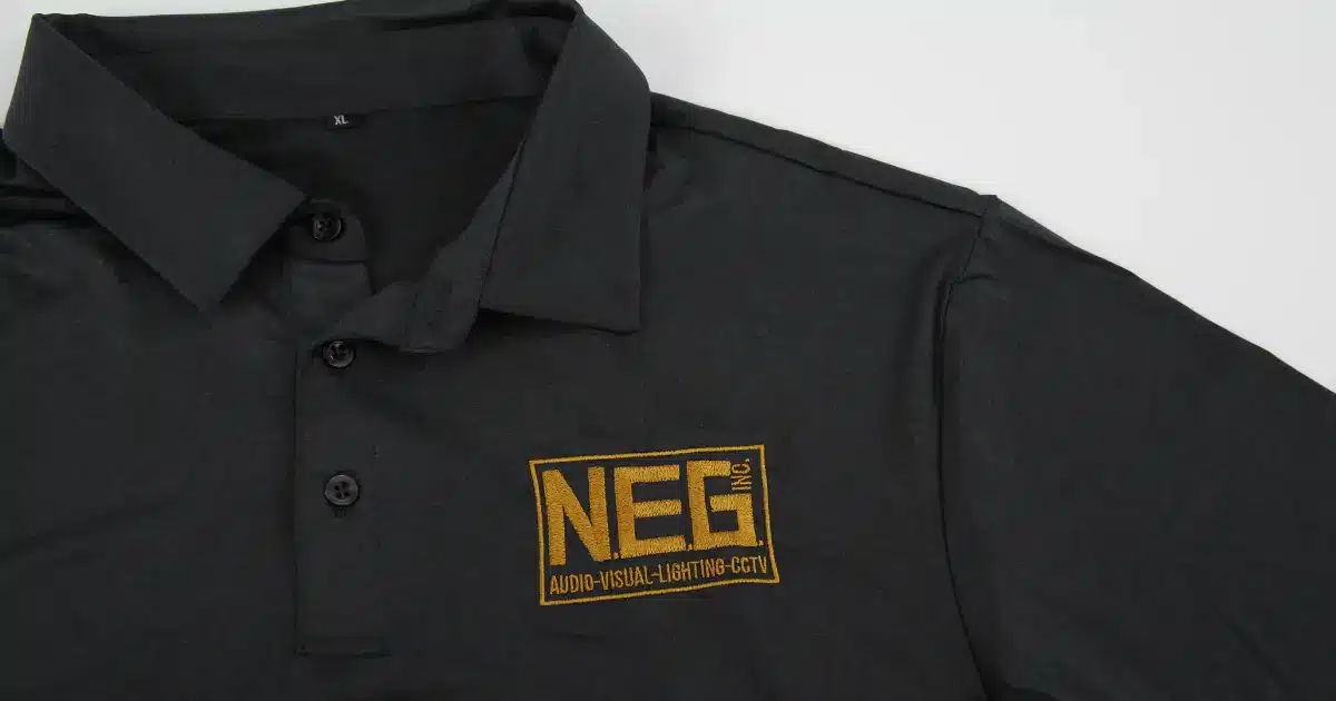 Our team of designers created custom embroidery clothes for Neg Inc, featuring a vibrant bright yellow logo. The bold design highlights their brand with precision and professionalism. Below are more insights on this transformation.