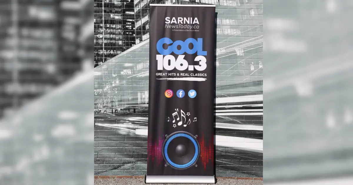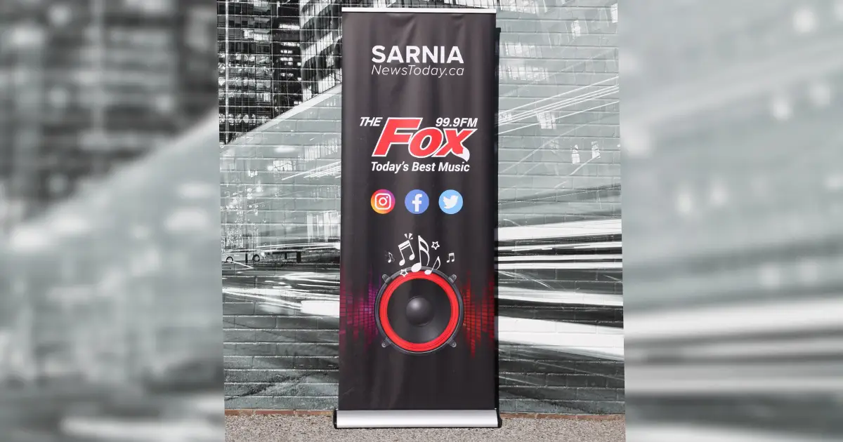 Our design team created eye-catching roll-up banners for Sarina News Today. The banners showcase their company branding and highlight their social media platforms. Below are more details on this transformation.