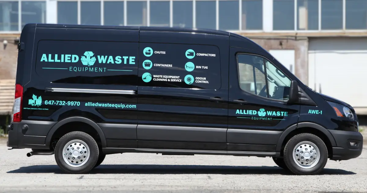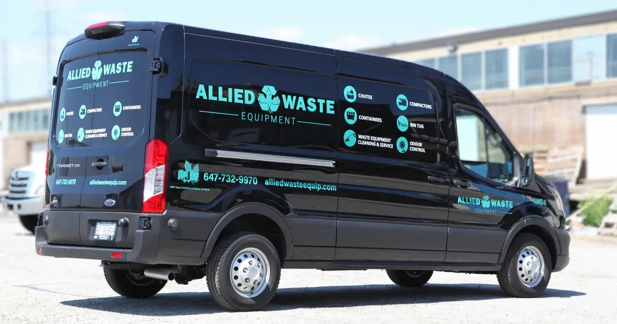 Designers crafted custom decals for Metro Jet Wash on a Ford Transit, featuring bold blue decals with their phone number and website. See below for more details on this project!